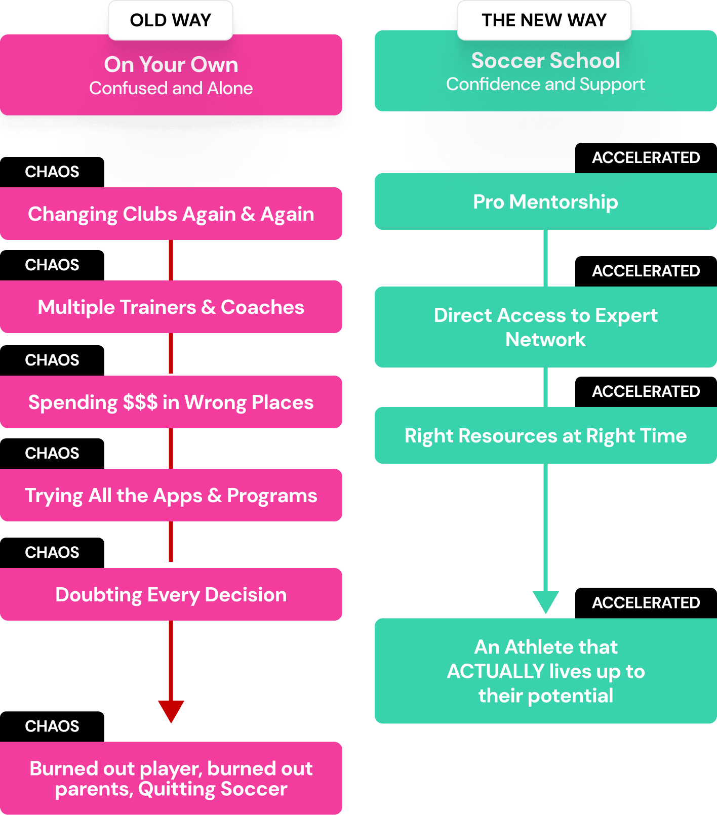 Inside Soccer School, you and your athlete get access to me — live, in-person, and alongside my circle of pro-level mentors. Think of it like having me in your corner during a heavyweight title fight… and the opponent? The confusing, overwhelming, and outdated youth soccer system.