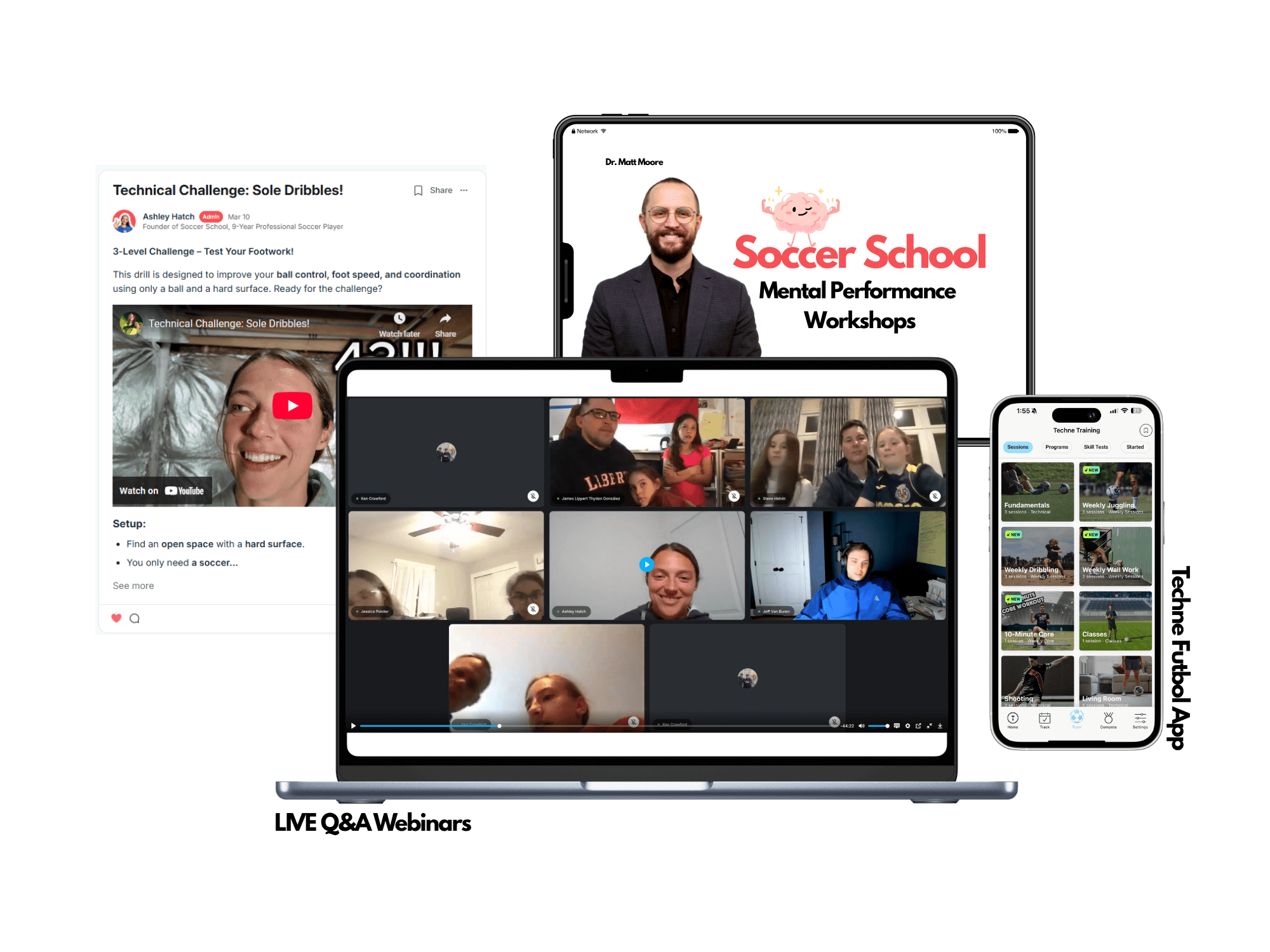 While there are unlimited free and paid programs that claim to help your athlete get better at soccer. Soccer School is a LIVING community that seeks to provide you the right resources, at the right time, from the right people to help you find success in your unique soccer journey. We accomplish this by holding regular live events and curating content to the needs of our members.